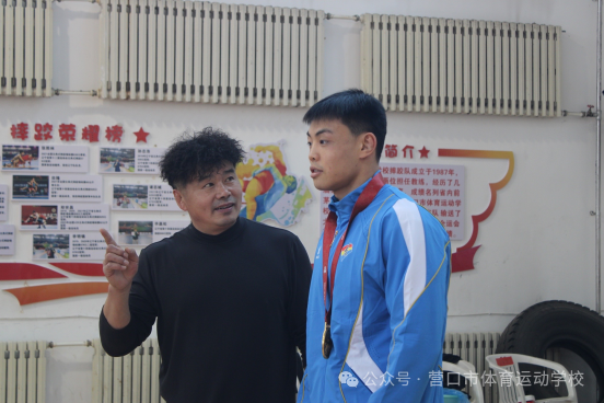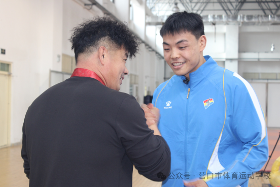 一、谆谆寄语,见证成长荣光 刚踏入校园,郑世昌便受邀参加座谈。营口市文旅局副局长王安铎表示:“21岁的年纪,敢跟身经百战的老牌冠军同台较量,还拿出了敢打敢拼的气势,这份魄力让人敬佩。这枚全运金牌,不仅是辽宁摔跤队的突破,更是咱们营口的光荣。”体校领导们满是自豪:“成为全运冠军,都是用毅力拼出来的,也希望你在亚运会、奥运会赛场继续冲刺!”